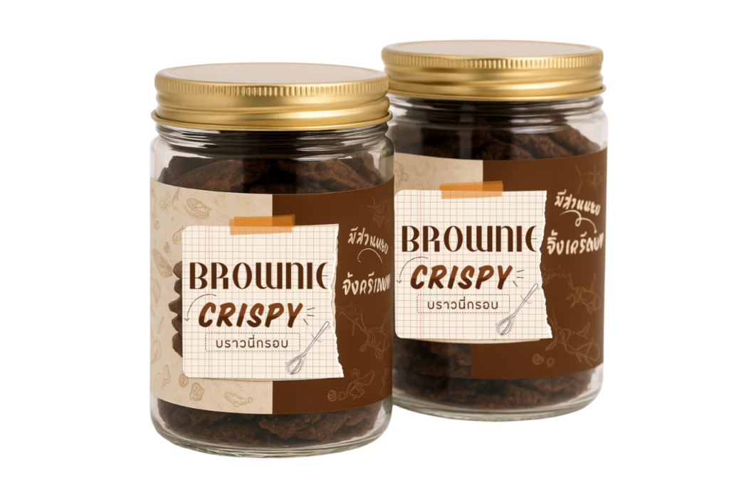 ผลิตภัณฑ์บราวนี่กรอบปราศจากกลูเตนที่มีส่วนผสมของจิ้งหรีดผง เป็นการส่งเสริมการใช้ประโยชน์จากจิ้งหรีดซึ่งเป็นแมลงที่อุดมไปด้วยคุณค่าทางโภชนาการมีโปรตีนสูง และเป็นวัตถุดิบที่หาได้ง่ายในท้องถิ่นนำมาแปรรูปเพื่อสร้างมูลค่าเพิ่ม อีกทั้งยังทำให้ได้ผลิตภัณฑ์ที่สร้างความหลากหลายเป็นทางเลือกให้กับผู้บริโภคที่รักสุขภาพและกลุ่มผู้บริโภคที่หลีกเลี่ยงอาหารที่มีส่วนผสมของโปรตีนกลูเตน