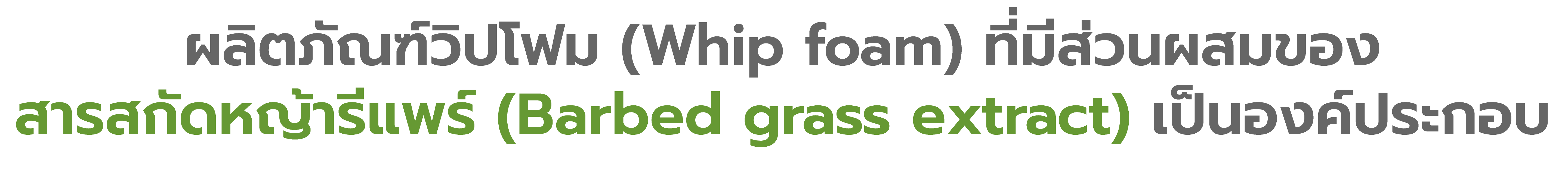 – ผลิตภัณฑ์วิปโฟม (Whip foam) ที่ได้ มีส่วนประกอบจากสารสกัดหญ้ารีแพร์ (Barbed grass extract) พรีไบโอติก (Prebiotics) และโปรไบโอติก (Probiotics) ที่มีส่วนช่วยรักษาสมดุลตามธรรมชาติและยับยั้งการเจริญเติบโตของจุลินทรีย์ก่อโรคได้ดี