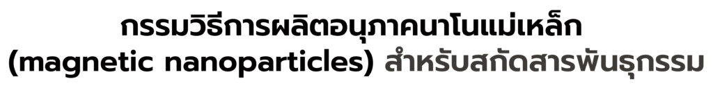 กรรมวิธีการผลิตอนุภาคนาโนแม่เหล็ก (magnetic nanoparticles) สำหรับสกัดสารพันธุกรรม เริ่มจากกระบวนการเตรียมอนุภาคนาโนแม่เหล็กแกนกลางด้วยวิธีการตกตะกอนร่วมอย่างง่ายระหว่างเฟอรัสไอออน (Fe2+) และเฟอริกไอออน (Fe3+) ในสภาวะที่มีการเติมเบสแอมโมเนียมไฮดรอกไซด์ (NH4OH) จากนั้นนำอนุภาคนาโนแม่เหล็กแกนกลางที่เตรียมได้มาทำการปรับปรุงพื้นผิวต่อด้วยกระบวนการโซลเจลของสารเตตระเอททอกซีไซเลน (Si(OC2H5)4) ได้อนุภาคนาโนแม่เหล็กเหล็กปรับปรุงพื้นผิวด้วยด้วยซิลิกาที่มีคุณสมบัติเชิงพื้นผิวที่เหมาะสมสำหรับนำไปใช้ในการสกัดสารพันธุกรรม โดยอนุภาคที่ได้จากกระบวนการผลิตมีสมบัติทางแม่เหล็กสูงสามารถแยกอนุภาคออกจากสารละลายได้ด้วยเทคนิคการแยกด้วยแม่เหล็ก มีการกระจายตัวในน้ำได้ดีไม่ตกตะกอน และสามารถจับยึดกับสารพันธุกรรมได้เหมาะสำหรับนำไปใช้ในงานด้านการสกัดสารพันธุกรรมด้วยเทคนิคการสกัดด้วยแม่เหล็ก (magnetic nucleic acid purification) ต่อไปได้ เป็นประโยชน์ต่อการนำไปประยุกต์ใช้ในทางการแพทย์ เช่น การหาลำดับพันธุกรรม (DNA Sequencing) และการตรวจวินิจฉัยโรคทั้งในตัวอย่างมนุษย์ พืช และสัตว์ได้